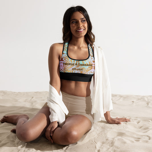 8xquiZit Collection T8T Tri-color Blue, Gold, & White Marble Padded Sports Bra