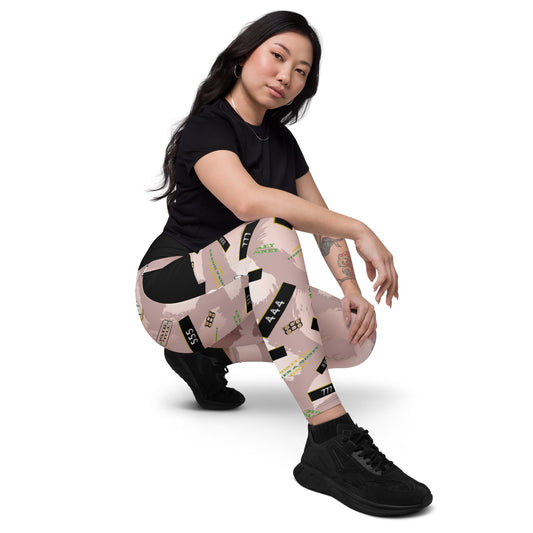 8xquiZit Collection - Women's Manifestation Pynk Slaymingo Marble Crossover Leggings with Pockets