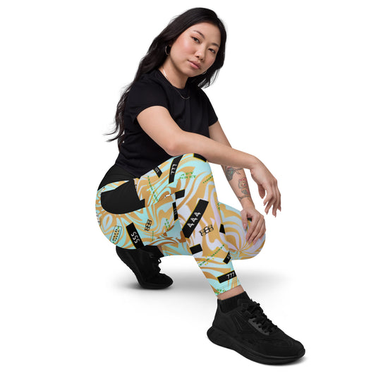 8xquiZit Collection - Women's Manifestation Coco-cured Marble Crossover Leggings with Pockets