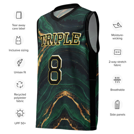 8xquiZit Collection T8T Emerald Green N Gold Marble Unisex Basketball Jersey