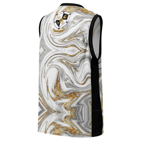 8xquiZit Collection - White N Gold Marble Unisex Basketball Jersey