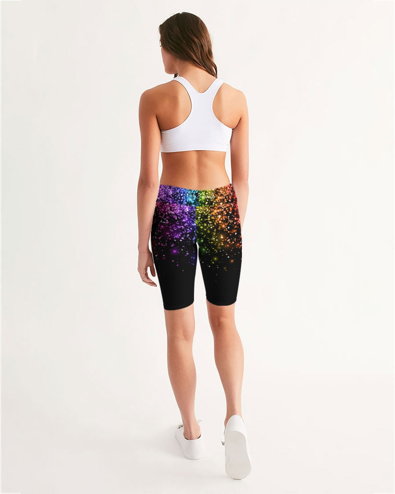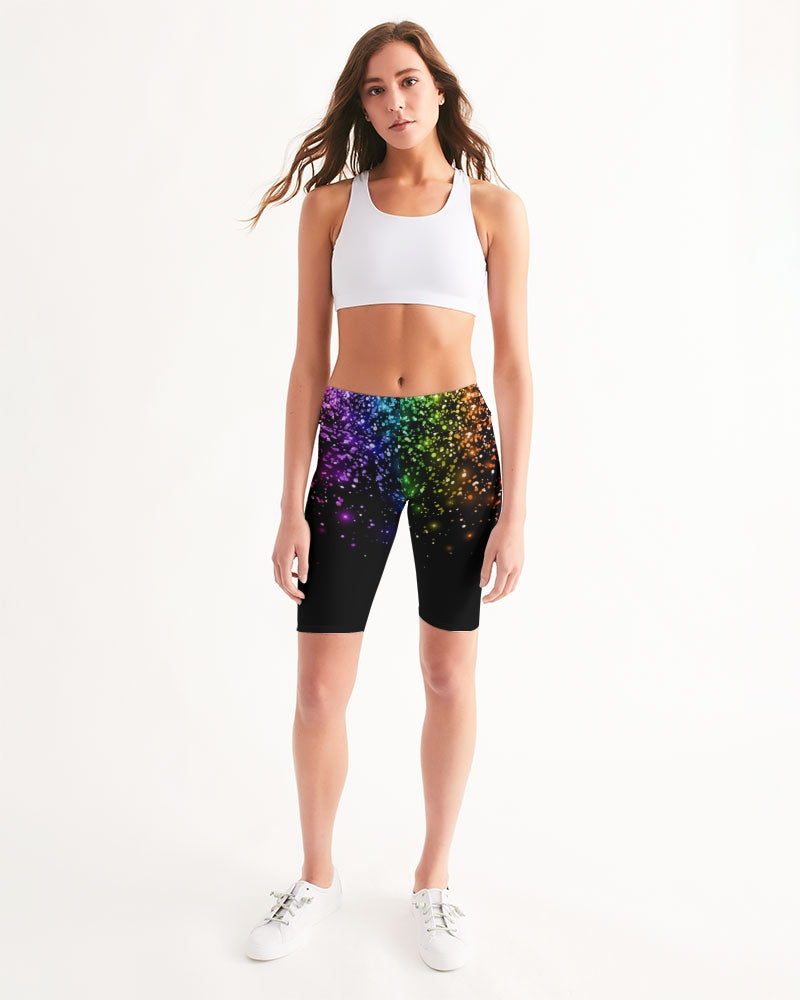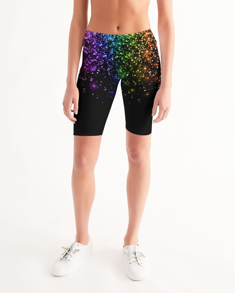 Black Rainbow Coruscate Women's Mid-Rise Bike Shorts