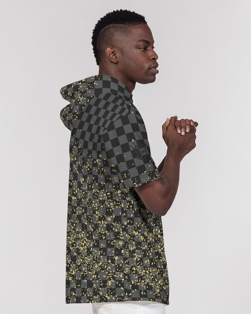 Check Blk n Gry - Gold Men's Premium Heavyweight Short Sleeve Hoodie